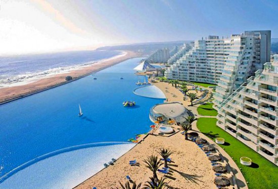 Located in Algorrobo, Chile. It is 1000 meters in length and covers 20 hectares with 66 million gallons of water from the Pacific Ocean.